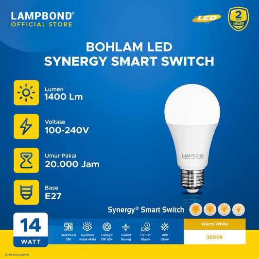Lampbond® - Bohlam LED Synergi Smart Switch 14 Watt - 4 Pilihan Terang