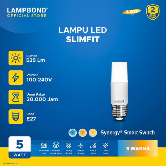 Lampbond® - Bohlam LED Synergy Smart Switch Slimfit 5 Watt - 3 Pilihan Warna FM