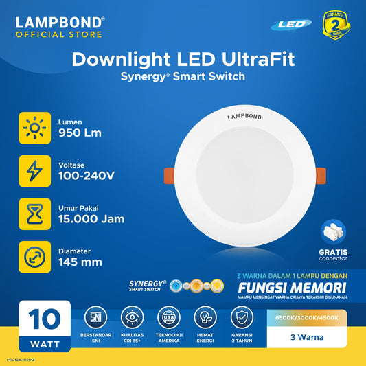 Lampbond® - Downlight LED Synergy Smart Switch 10 Watt - 3 Pilihan Warna FM