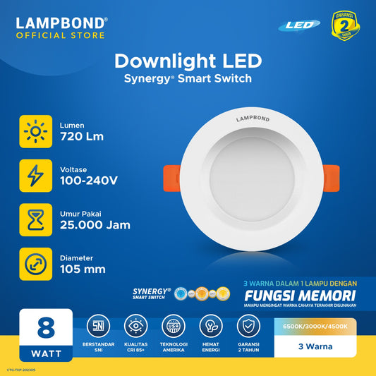 Lampbond® - Downlight LED Synergy Smart Switch 8 Watt - 3 Pilihan warna FM