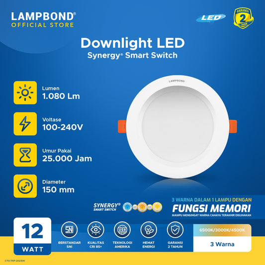 Lampbond® - Downlight LED Synergy Smart Switch 12 Watt - 3 Pilihan Warna FM