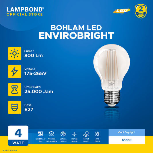 Lampbond® - Bohlam LED Filamen 4W Frosted - Cool Daylight