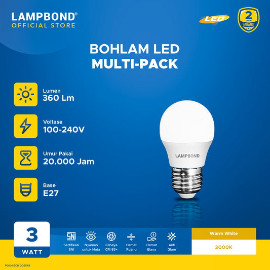 Lampbond® - Bohlam LED 3 Watt Multi-Pack (4pcs) - Warm White