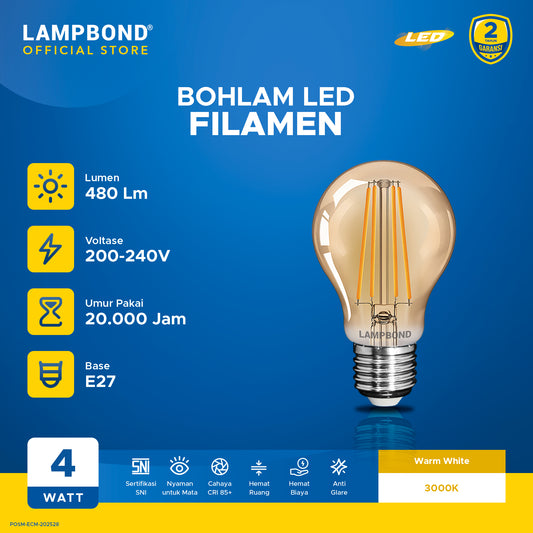Lampbond® - Bohlam LED Filamen WA60 4 Watt - Warm White