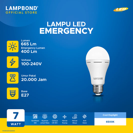 Lampbond® - Bohlam LED Emergency Synergy Smart Switch7 Watt - Cool Daylight
